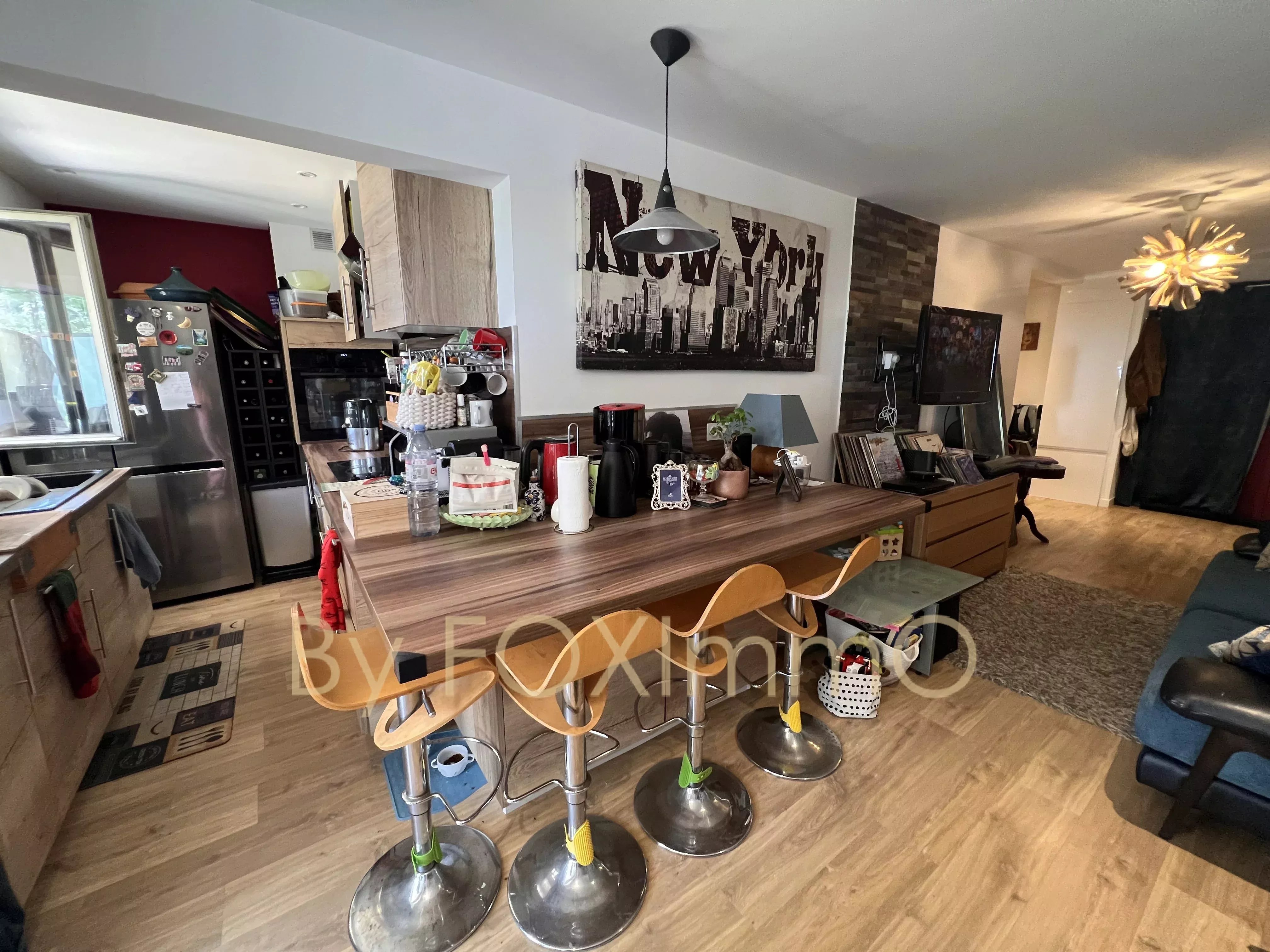 Prestations de qualité : climatisation réversible, cuisine sur mesure, parquet en bois, ravalement de façade récent.