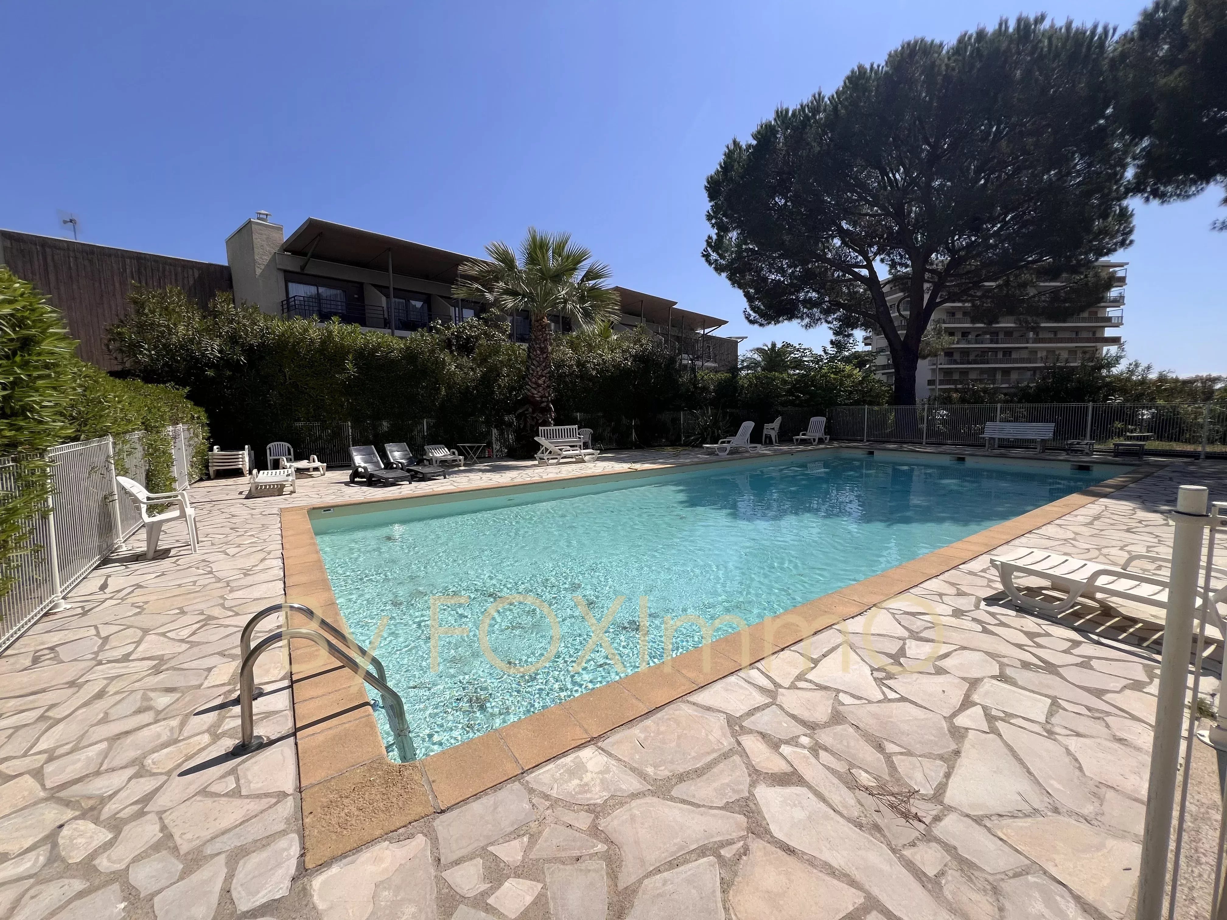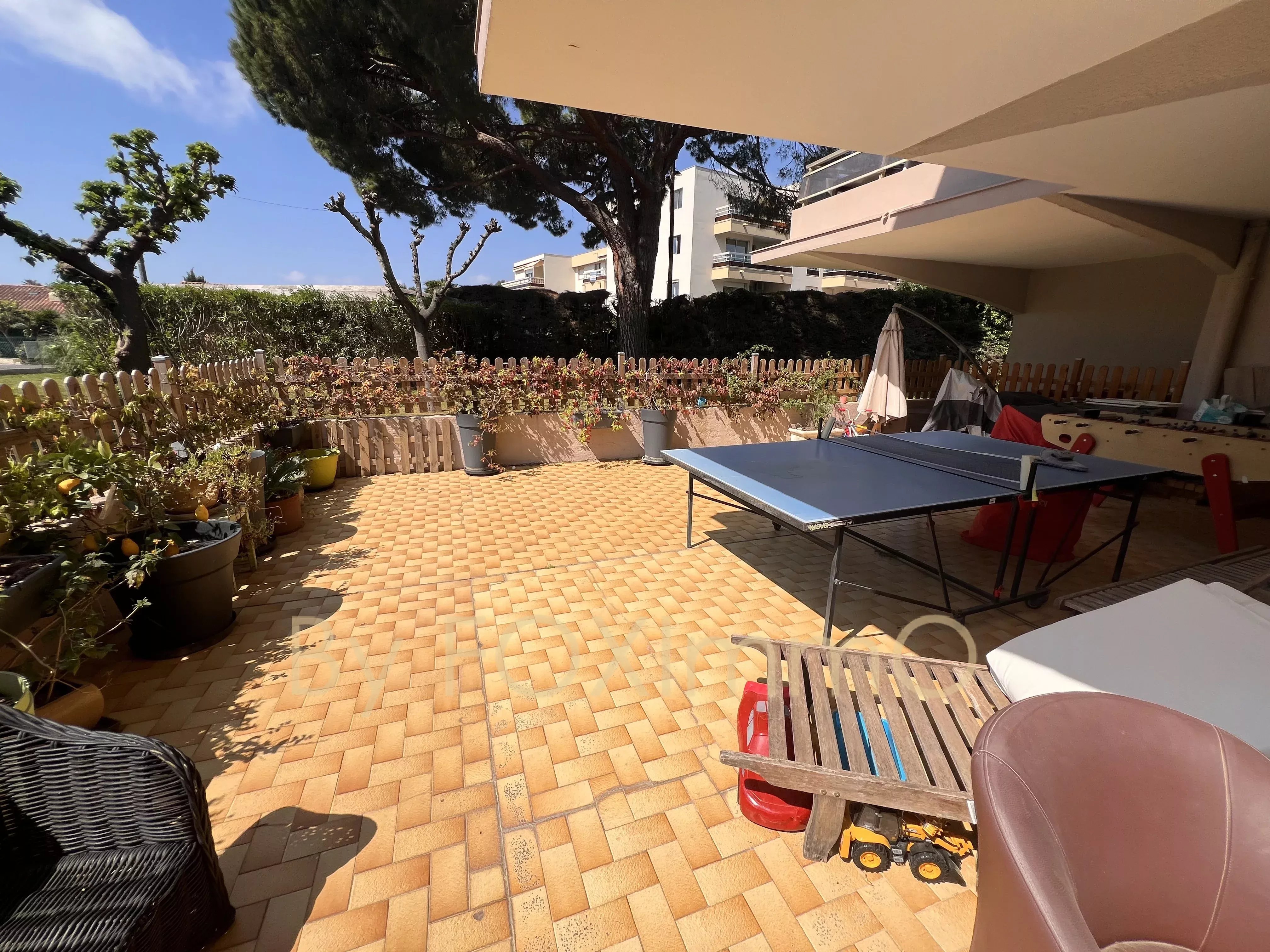 Dans un environnement privilégié et calme, au sein d'une petite résidence de standing avec piscine, grand deux pièces d'angle en rez-de-jardin. Il se compose d'une entrée, d'un séjour, d'une belle cuisine aménagée prolongée d'un espace repas convivial, d'une chambre, d'une salle de bains et de toilettes indépendantes. Il dispose également d'une vaste terrasse de 80 m² exposée plein sud, sans vis-à-vis, d'une place de parking en sous-sol et d'une cave.